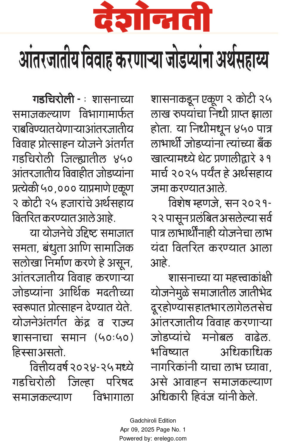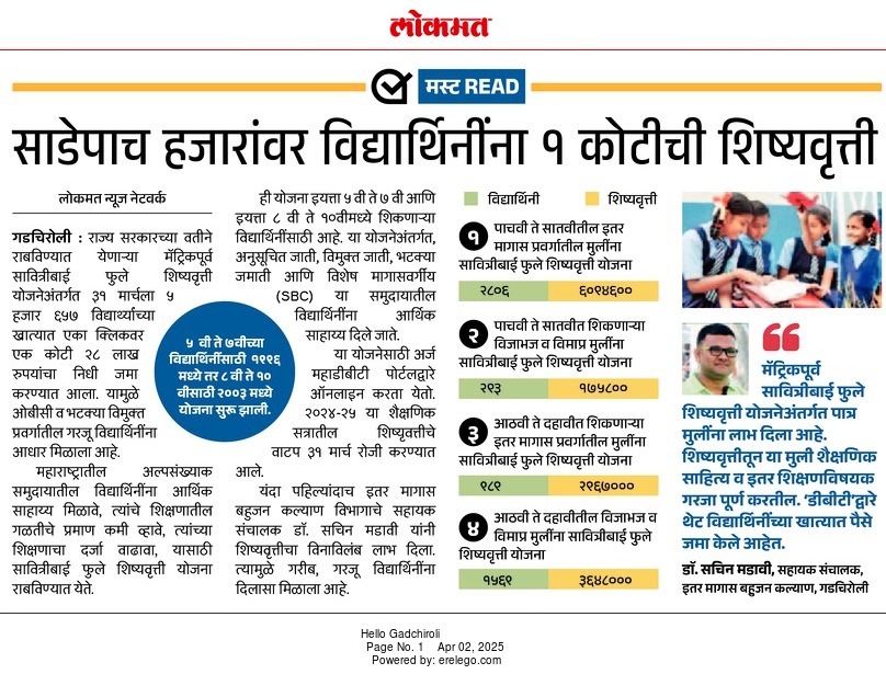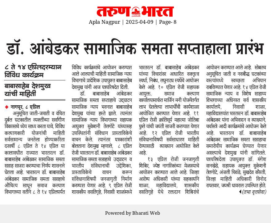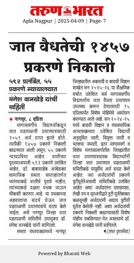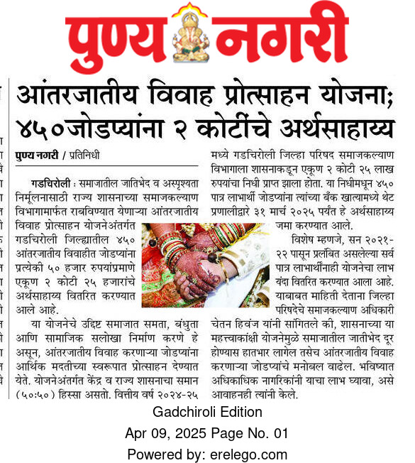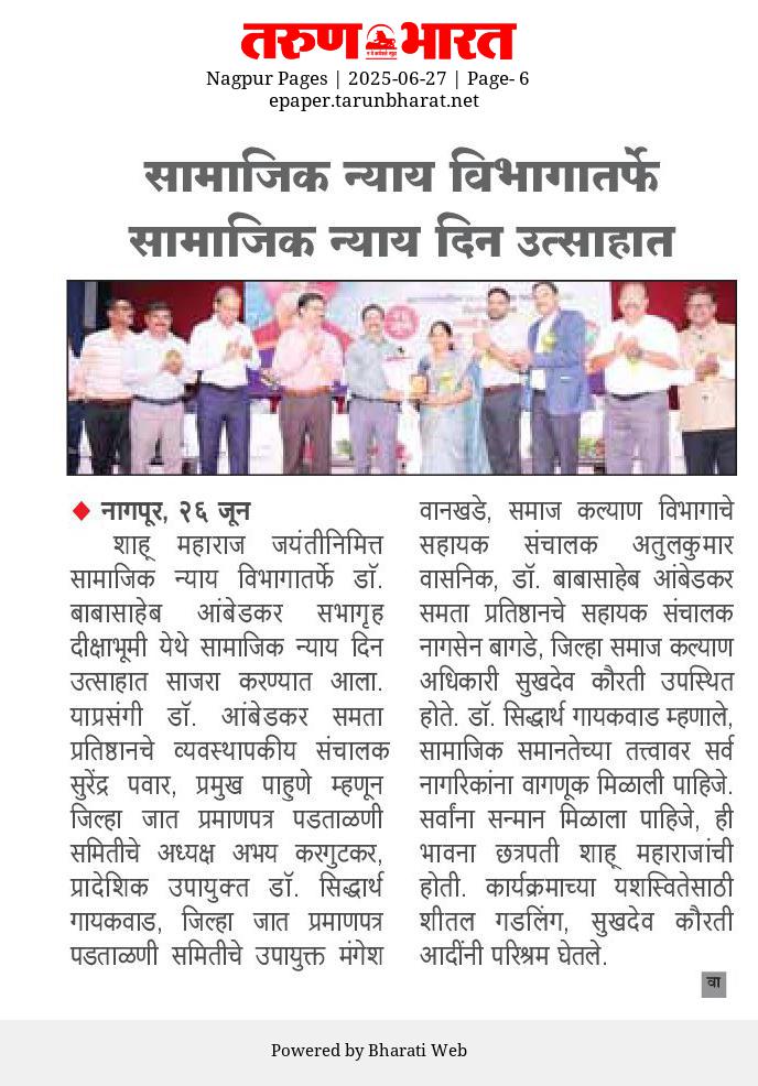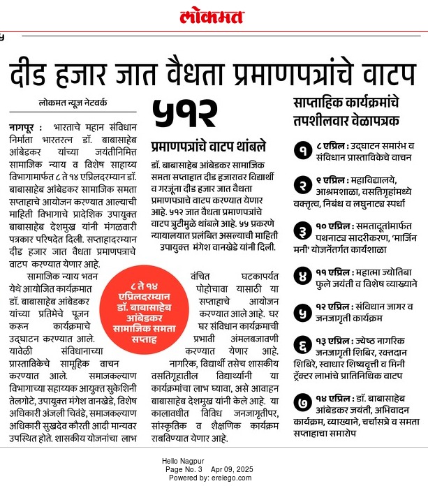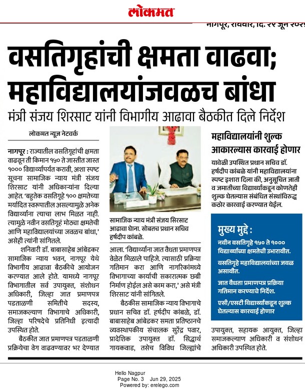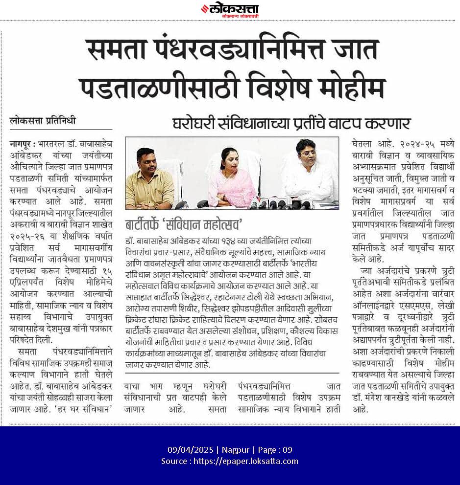 समाज कल्याण विभागामार्फत राबवल्या जाणाऱ्या योजनांची माहिती या वेबसाईटवर अधिकृतपणे प्रसिद्ध करण्यात आली आहे. याव्यतिरिक्त सोशल मीडियावर प्रसिद्ध केलेल्या कुठल्याही योजनेचीप्रादेशिक उपायुक्त, समाज कल्याण विभाग, नागपूर. खात्री करत नाही.